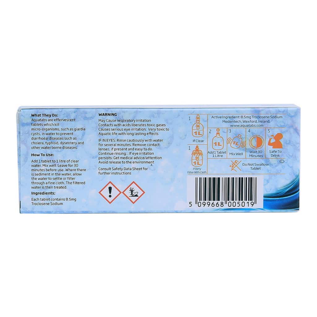 Aquatabs zijn dé waterzuiveringstabletten voor wie geen risico neemt. Of je nu op missie of een survivaltocht bent, in het veld kampeert of je noodpakket aanvult, met Aquatabs ben je altijd voorbereid.