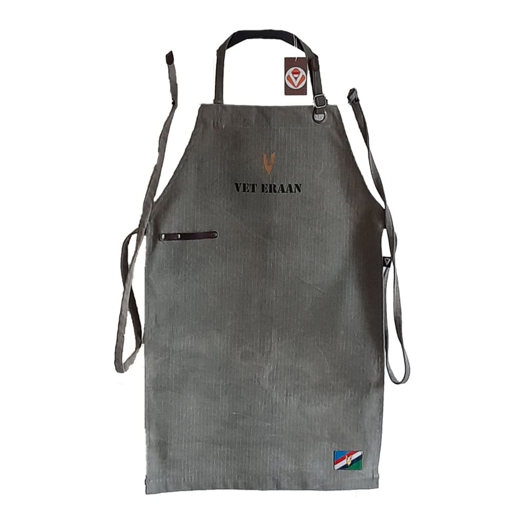 Het materiaal van dit unieke bbq schort was geschikt om te gebruiken in gebieden waar sneeuw lag. Omdat het materiaal van ieder bbq-schort uit gerecyclede leger boogtenten bestaat, kunnen de barbecueschorten kleine gebruikerssporen bevatten die voor extra charme zorgen. De sprekende tekst ‘Vet Eraan’ is een duidelijke knipoog naar de veteraan en met de aankoop van dit schort spreek je tevens je erkenning en waardering uit voor de mannen en vrouwen waar we zo trots op zijn, onze veteranen!