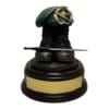 Het plaatje is van messing en vergelijkbaar met wat juweliers gebruiken voor gravures. Je kunt maximaal 4 regels laten graveren met maximaal 35 karaktertekens per regel. Het beeld wordt gemaakt van cold cast resin. Dit is een mix van hars en bronspoeder. D sokkel is van mahoniehout. De afmeting van het Boots and Beret beeld is 13 x 15 x 15 cm met een gewicht van circa 2 kilo. Let op! omdat elk beeld handgemaakt wordt kunnen afmetingen en gewicht iets afwijken van de richtlijn.