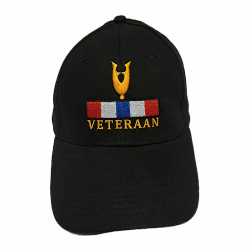 Deze cap is van 100% katoen en beschikt over een klittenband-sluiting aan de achterzijde. Verder beschikt de baseball cap over een geborduurd veteranen draaginsigne logo, het Nederlands-Indië baton en de tekst ‘veteraan’.