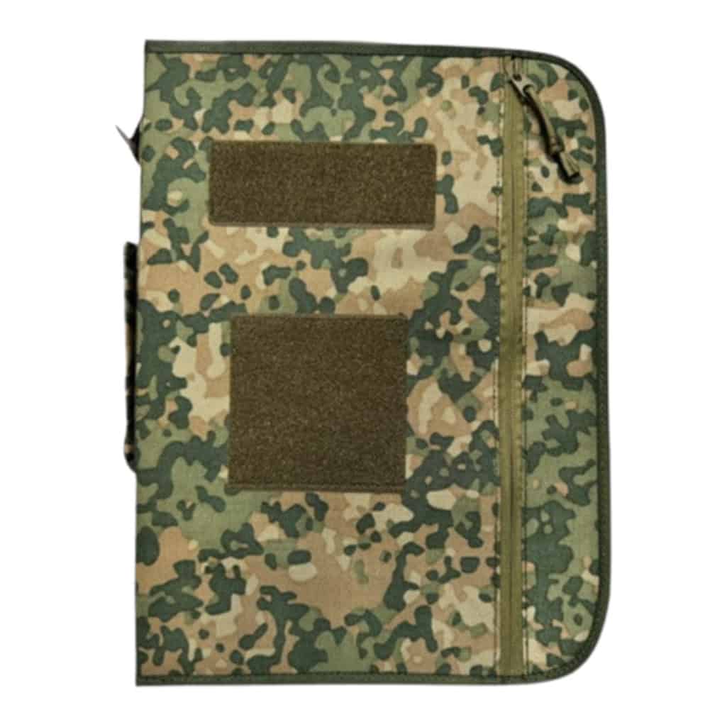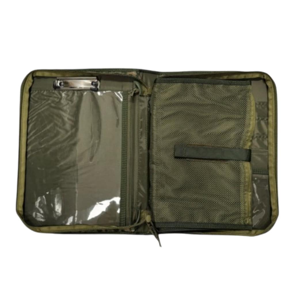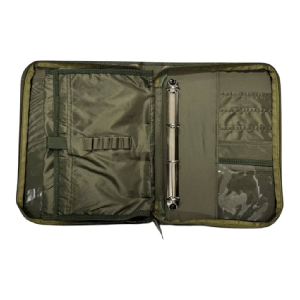 A4 notebookcover/organizer met een handige tweeluik-opening, speciaal ontworpen voor A4-notitieboeken. De covo map nfp is uitgerust met een papierklem, ringband en meerdere opbergvakken voor documenten, pasjes en pennen. De voorkant is voorzien van klittenband, ideaal voor het bevestigen van naamlinten en eenheidspatches.