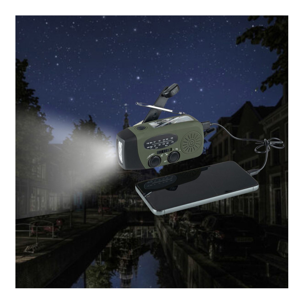 Opwindbare Noodradio met zaklamp en oplaadfunctie