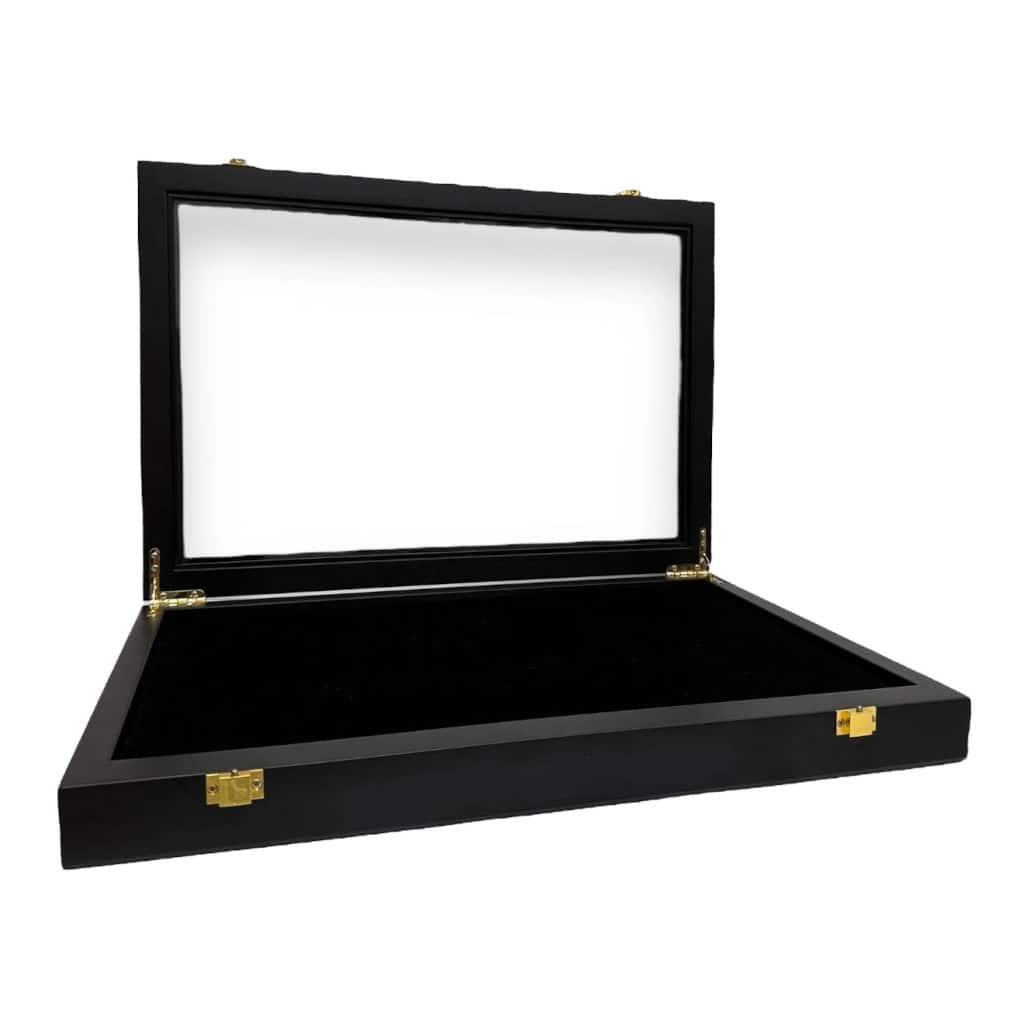 De ontwikkeling en productie van deze shadowbox ligt volledig in handen van Nederlandse vakmensen die hun producten nog op echte ambachtelijke wijze maken. De medaille display heeft luxe, ingefreesde scharnieren en ontspiegeld glas. Praefero, de onderneming achter deze displays, heeft er zelfs aan gedacht ruimte te creeëren zodat jij je drukknopjes van je medailles, pins of spelden kunt opbergen en niet kwijtraakt.
