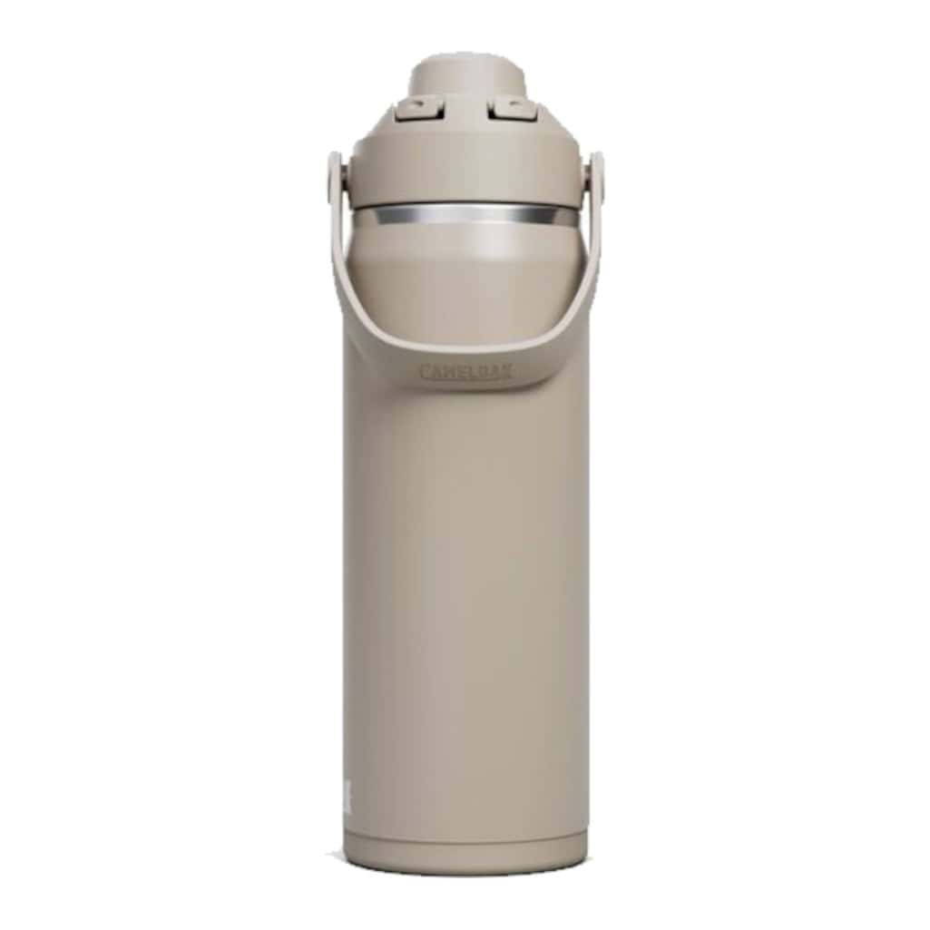 De thermo drinkfles Chug vacuum is de opvolger van de alom bekende Chute Mag Vacuum Insulated en onderdeel van de nieuwe Thrive-serie van Camelbak. Wat zijn de verschillen? Om te beginnen heeft de Chug uitvoering geen vaste hendel meer maar een comfortabele draagbeugel. Daarbij is de onderzijde voorzien van een anti-slip bodem die ervoor zorgt dat de fles stevig op zijn plek blijft staan. Ook het mondstuk is vernieuwd. In plaats van dat het mondstuk hard is, zoals we gewend waren, is deze nu vervangen door een zachte tuit. Verder blijft de fles zijn uitstekende eigenschappen behouden. De fles bestaat uit 52% Stainless Steel, 30% PP, 8% TPV en 7% Silicone.