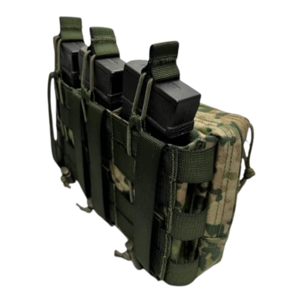 Drie open-top magpouches, één geïntegreerde utility pouch. Ontworpen voor snelheid, overzicht en veelzijdigheid in het veld.