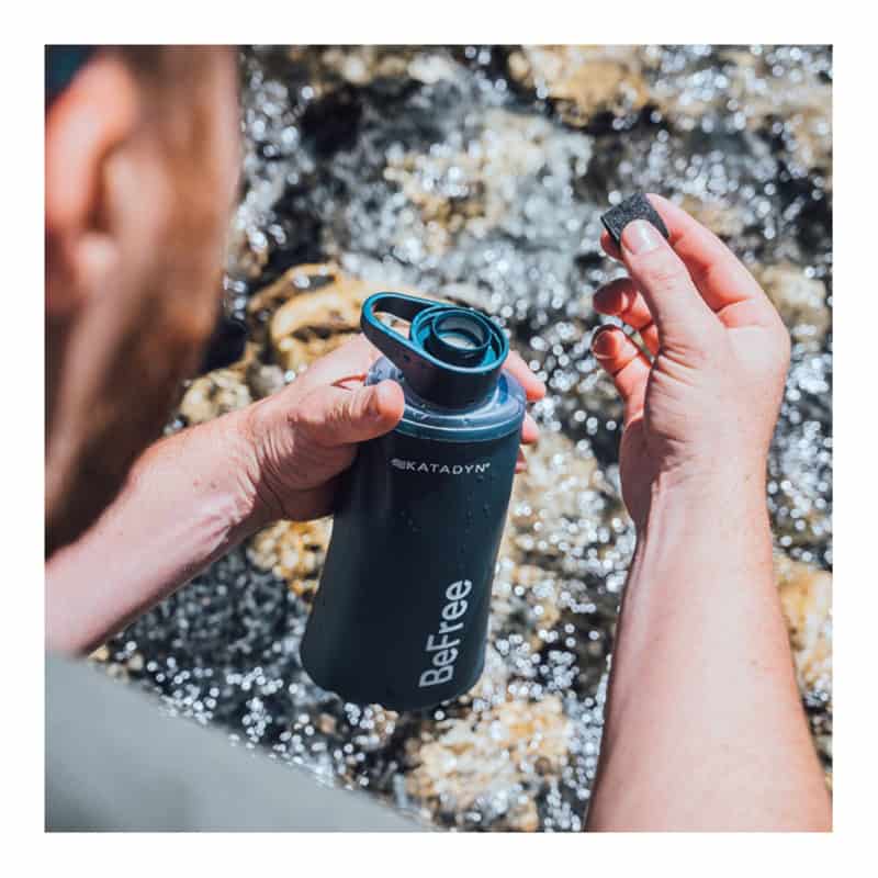 De Katadyn BeFree bestaat uit twee losse onderdelen; de waterfilter met EZ-Clean Membrane™ en de flexible Hydrapak® drinkfles. Je draait de filter van de fles en kunt de fles vullen met water uit een meertje, rivier of beek. Draai de filter er op en het water wordt al drinkend gefilterd.